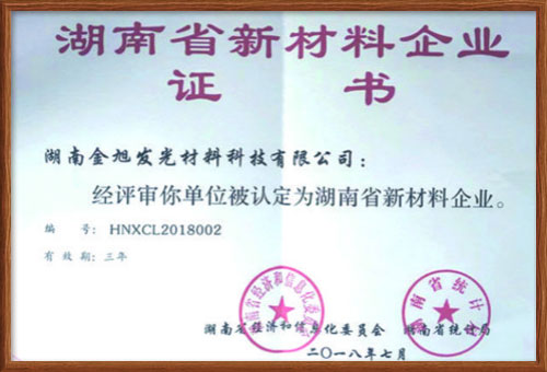 湖南金旭發光材料科技有限公司于 2016年成立,注冊資金1000萬元,是一家專業從事蓄能自發光反光材料的研發、生產與銷售的高新技術企業,于2018年獲得省工信廳認定的省級新材料企業。
